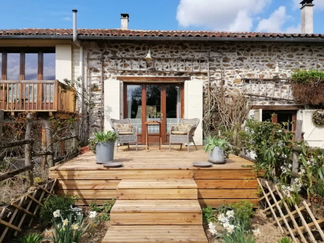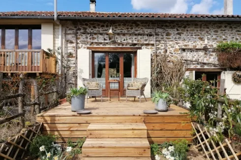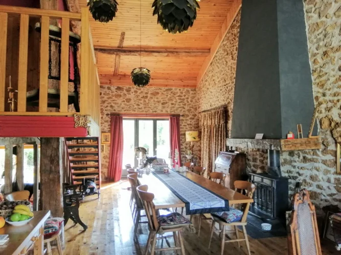 Sympathetically converted and extended barn in a rural hamlet of 14 properties but less than 10 minutes’ drive from shops, bars, restaurants, services and schools in the small town of Chabanais. This unique property sits on a plot of approximately 0.5 acres, featuring a 8.1m x 3.9m swimming pool and boasting countryside views.