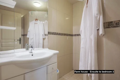 The property has three spacious double bedrooms, two of which are en-suite. In the larger bathroom you will find a double sink, a large walk-in shower with rain shower, a separate bath, bidet and WC. The second bathroom has a sink and shower.