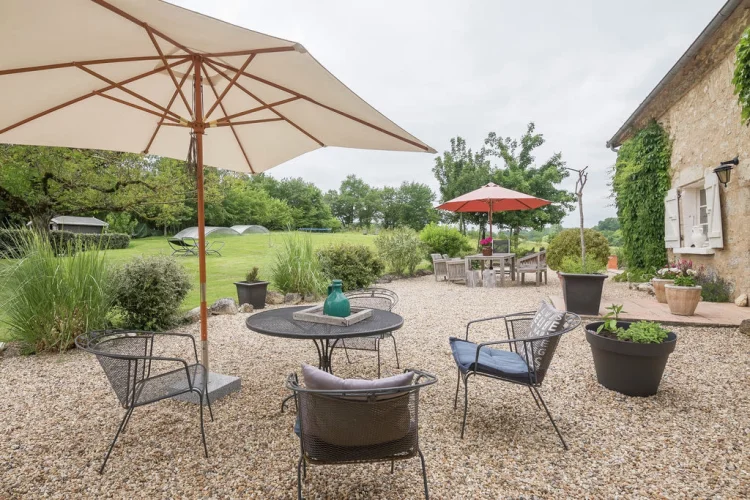 There is a terrace along the entire length of the gîte with views over the beautifully sloping French fields.