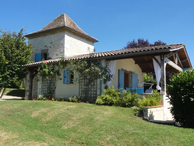 Pigeonnier Terrace, View to SW over pool