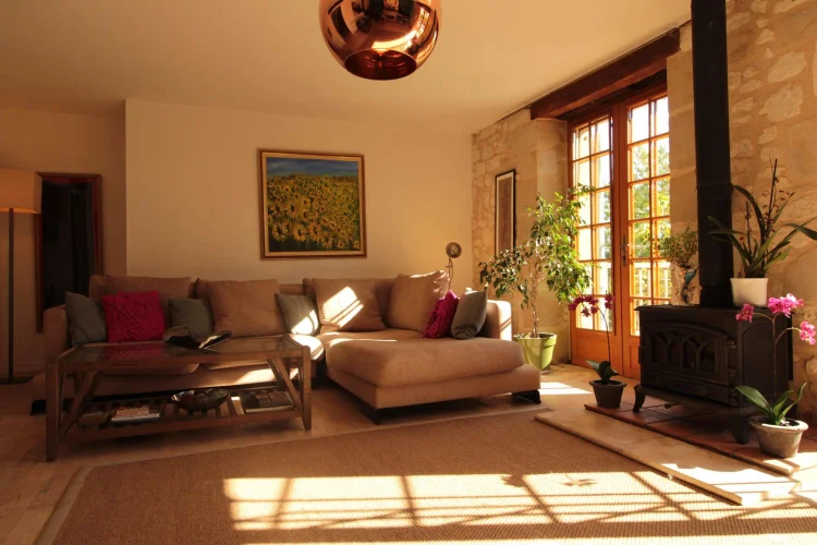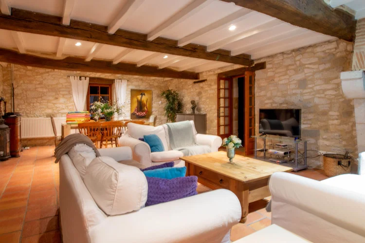 Grange Lounge with French doors to terrace, South Facing.
