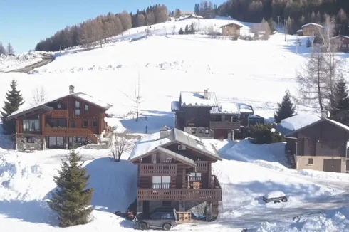 Newly renovated chalet just above the village of La Plagne Montalbert. Situated in the quiet hamlet of "Hameau de Beauregard" with stunning views across the valley. 25m from the piste (green piste and ski de fond path which takes you to the village centre) and approx. 150m to the nearest lift. The chalet is built in traditional log cabin style with contemporary interior renovation completed in 2021. Ideal as a family home or for rental opportunities.