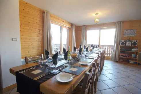 This spacious 300m2 chalet for sale in La Plagne was built to a very high standard with top quality materials throughout. The property has 8 en-suite bedrooms and can sleep up to 18 people with rooms arranged over three floors.