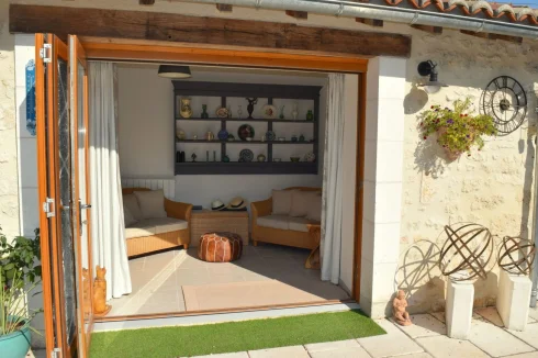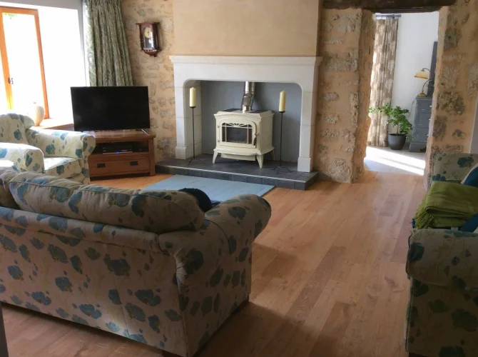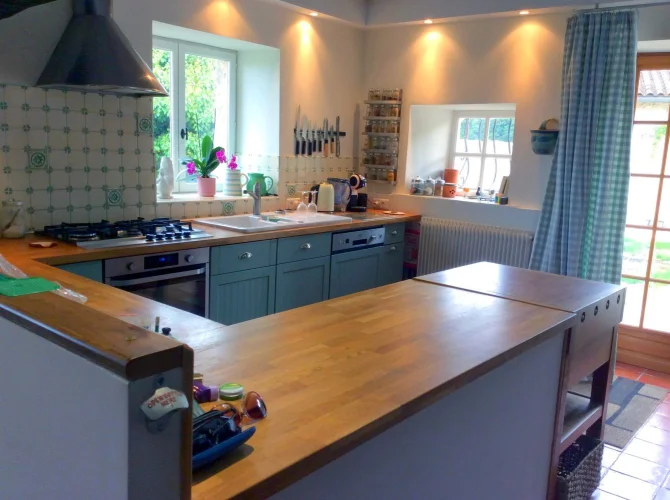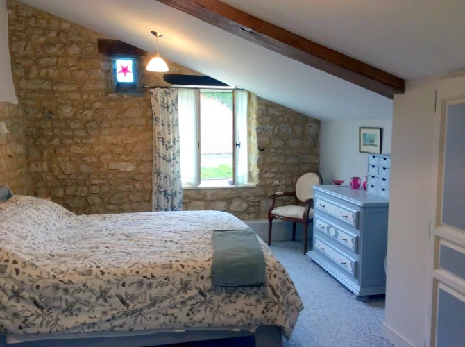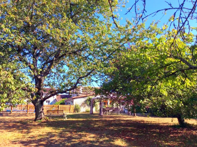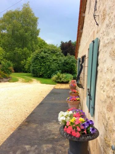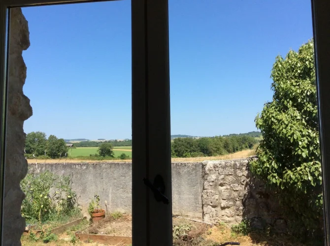 Surrounded by organic arable fields with beautiful views and no immediate neighbours. Ten minutes drive from Villebois Lavalette which has all amenities including a good supermarket.