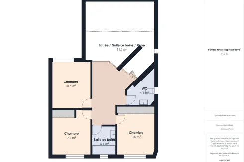 Entrance and corridor leading to two bedrooms, a shower room, …2 Bedrooms 1 Bathroom Habitable Size: 64 m²Ref: 205207€111,000