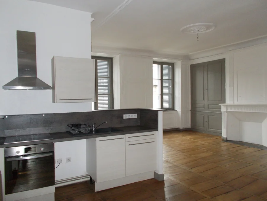 Beautiful 4-room apartment in the heart of downtown Saint-Léonard-de-Noblat. Located on the second floor of the building, it comprises: an entrance hall, a living room opening onto a fitted and equipped kitchen, two bedrooms, one with a walk-in closet, an office, and a bathroom with toilet.Heating provided by an individual gas boiler.