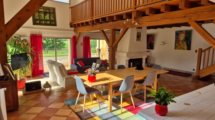 Thanks to the new photovoltaic panels, the house is practically self-sufficient. Cameras distributed around the house and the gate will monitor your animals. A very large parking lot for several cars as well as a large carport. In the property also flows a river that is in water all year round. You have many completely private paths on the property which will allow you to take walks for several km. 10ha of meadows with excellent grass for the horses. There is also an old palombière but it needs to be restored. In the woods there are also several springs and ponds. In the forest you can see roe deer, wild boar, stags and hares