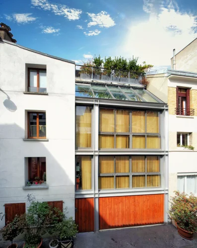 On the top (third) floor, a private terrace provides an elevated outdoor retreat above the city — a rare asset in a dense Parisian context.