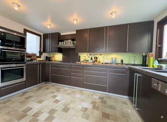 This listing presents a property in excellent condition (post-renovation, with high-end materials and modern systems) that carefully balances historic character with contemporary luxury. The layout is well organized—public/entertainment spaces below, private zones above, and generous annexes (garage, cellar, utility). The presence of luxury fixtures (stone, marble, custom joinery) and smart climate/security systems suggests a turnkey property, with minimal immediate work required (aside from the slated window renewals).