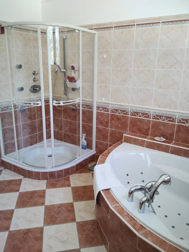 • The main bathroom, spanning 11 m², includes both a shower and a bathtub, with a double vanity unit