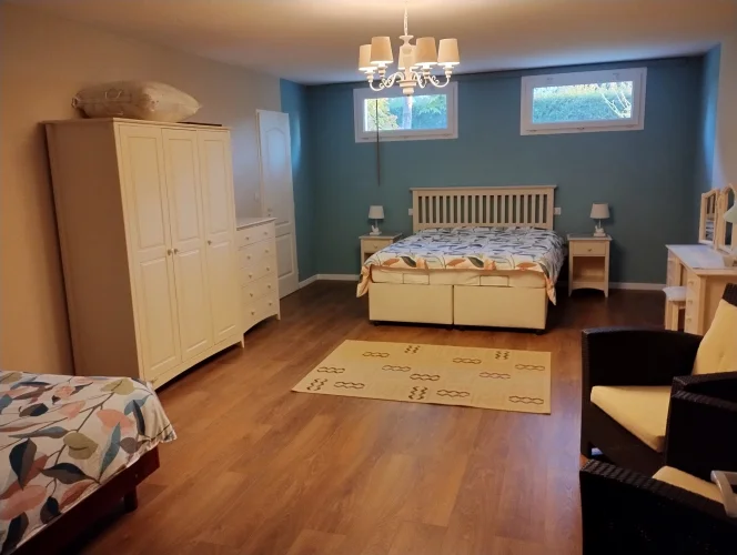 On the garden level there is a sizable 32 m² television lounge and a summer kitchen, there is also a 31 m² guest bedroom with an adjoining 9.54 m² room (offering potential for conversion into a dressing room), a shower room, an office, a separate WC, a wine cellar, and a substantial 28 m² garage.