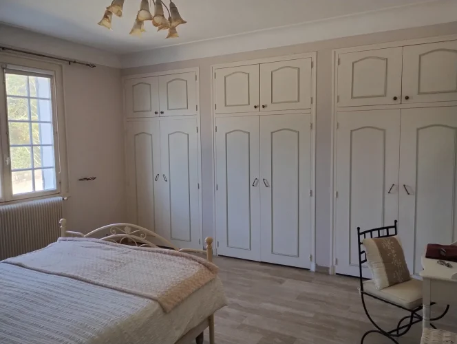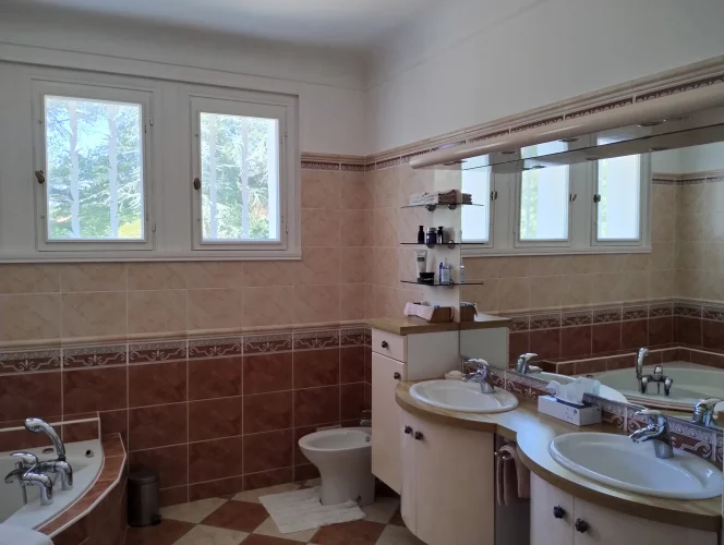 A superb pool house, complete with a covered terrace, overlooks the 12x6 m chlorine pool, which enjoys complete privacy, rendering it an ideal setting for extended summer entertaining. The landscaped park, extending over 4,260 m², and is cultivated with ornamental and fruit-bearing trees, grapevines, and well arranged flower beds.