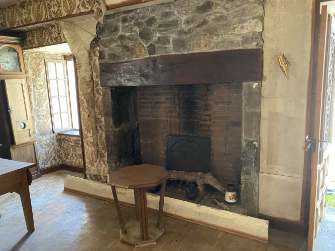 First Floor: Large dual aspect lounge with door and steps accessing side of property and rear garden, huge Cantou fireplace, large bathroom, two bedrooms