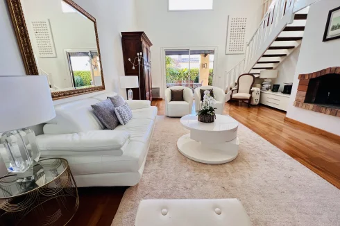 The interior of this lovely home is filled with light. Large windows on all sides allow the light to stream into every room. The South and North side each have a private garden filled with greenery, completely enclosed which allows intimate privacy and light. There are wooden floors in most areas and a large cathedral ceiling in the main living space. All 4 bedrooms have the space for a double bed and there is a lot of additional storage in the mezzanine area, the outside pantry, the entrance hall and the cave area under the house. The fireplace in the living room adds the cosy factor during the winter months. The potential exists to create a huge principal suite with minor renovation and to convert the current dining room into another bedroom as was originally designated, as the living room is large enough to include a dining space.