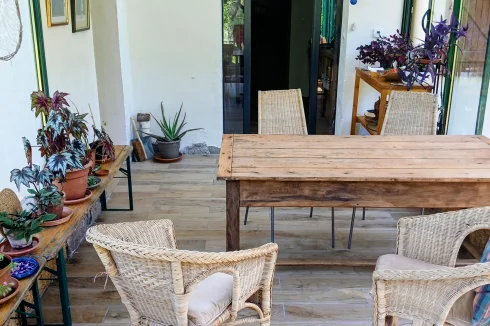 The entire property sits in a newly created organic wildlife garden with an abundance of flowers, fruits, herbs and vegetables. There are 2 terraces, a pergola covered in a grape vine, and large parking area.