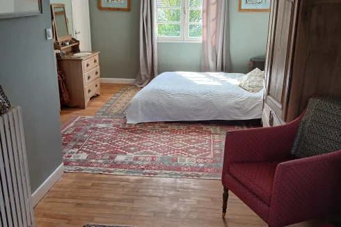 Handmade door to suite 2 : Bedroom/sitting room, utility sink cupboard, antique wardrobe and an ensuite bathroom (shower and bath).