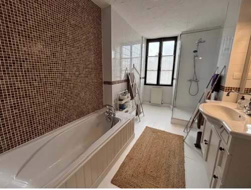 A lovely property in the centre of a beautiful village, comprised of a main three bedroomed house, with an attached 2 bedroomed house/gite and a further guest studio. All three parts of the property benefit from independant access.