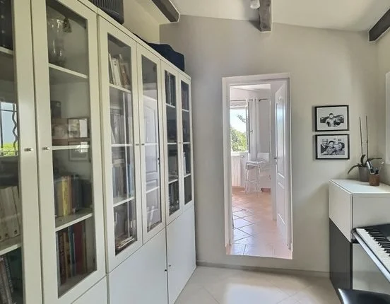 Downstairs, on the garden level, the generous master suite complete with dressing room and ensuite shower room opens onto a sunny terrace while a third bedroom also offers direct access to the terraces and pool. A large family bathroom, separate guest toilet, and direct access to the 24 m² garage with utility area complete this level.