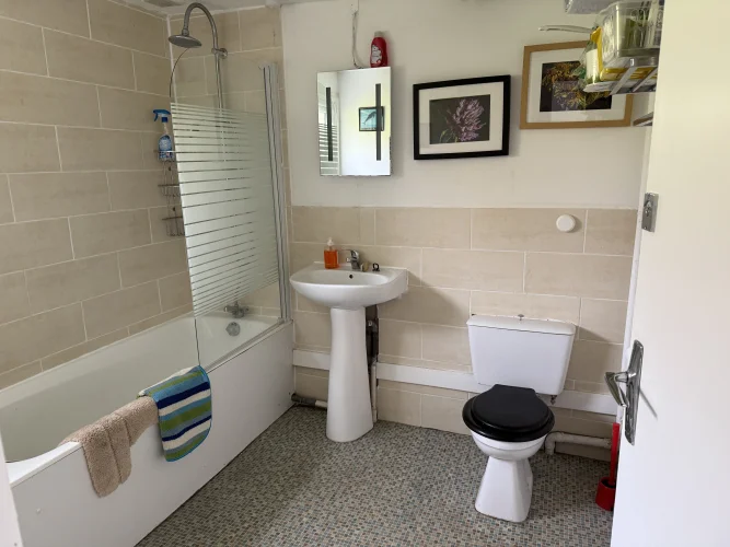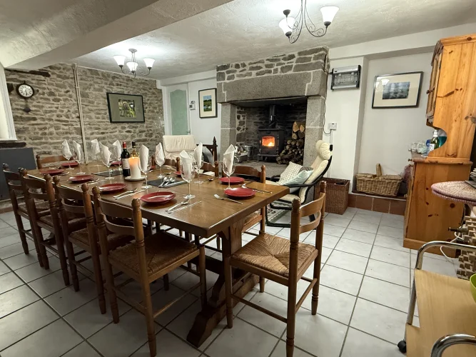 It thus now has five bedrooms with nine beds (and cot if needed), large living room with wood burner stove together with a separate dining room with wood burner stove. The kitchen is equipped with double electric oven, washing machine and dishwasher. One bathroom contains a toilet and bath (with shower) and the other bathroom has a shower and separate toilet.