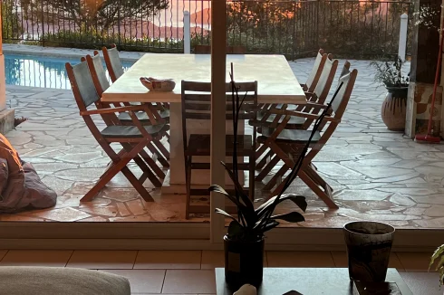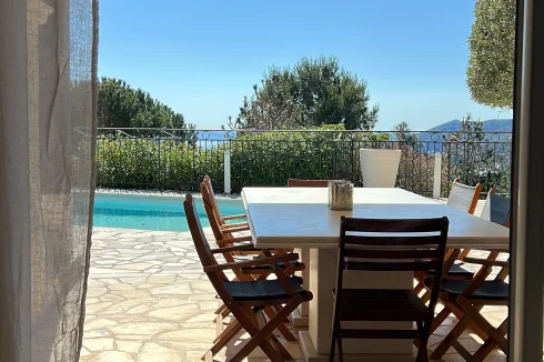 The exterior of the villa is designed as a premier Mediterranean retreat, optimised for both grand-scale entertaining and quiet relaxation. A sprawling stone-paved terrace serves as the focal point, featuring a private swimming pool and multiple shaded alfresco dining areas that overlook lush coastal views. The property includes a fully equipped outdoor summer kitchen / bar with professional masonry and seating, providing the ultimate setting for evening cocktails. From the expansive balconies to the poolside lounge, every outdoor space is perfectly oriented to capture the region's legendary sunsets and panoramic Mediterranean horizons.