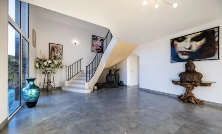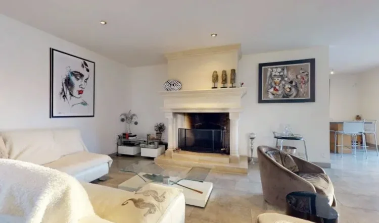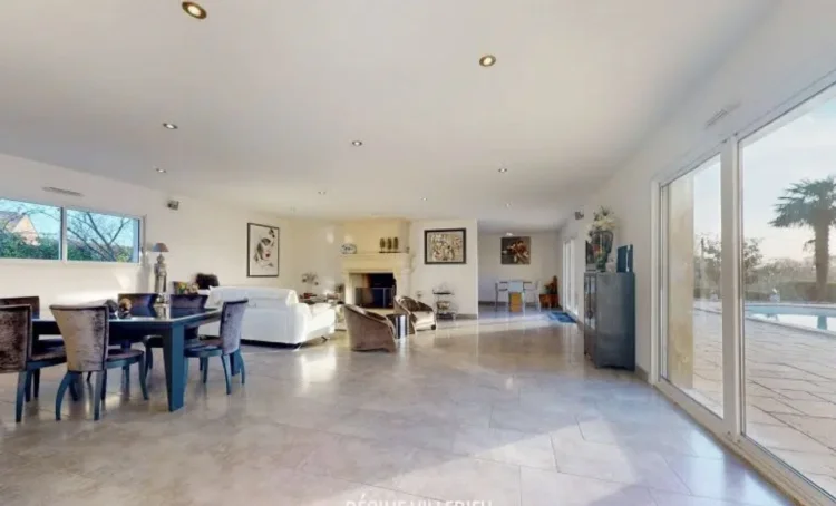 A landscaped garden and a south-facing terrace with an uncovered swimming pool complete the property. Double garage, perfect cellar for storage, wine cellar, technical room for the swimming pool, central vacuum system, motorized gate.