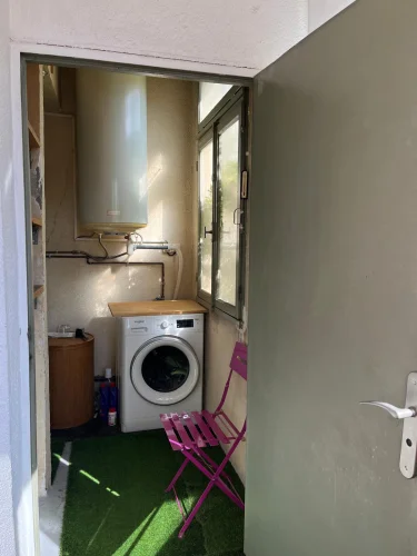 Sale subject to the agreement of both co-owners and completion by notarial deed; includes table&chairs, premium bed, laundry & drying machine, equipped kitchen