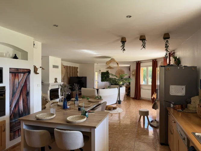 Single-storey house built in 1998, located in a peaceful and elevated setting near Carcassonne. Bright and comfortable, it offers 4 bedrooms, 2 bathrooms, a spacious living room with fireplace, and great potential for further customization. Recently renovated façade and well-maintained roof. Ideal as a main residence, holiday home, or investment.