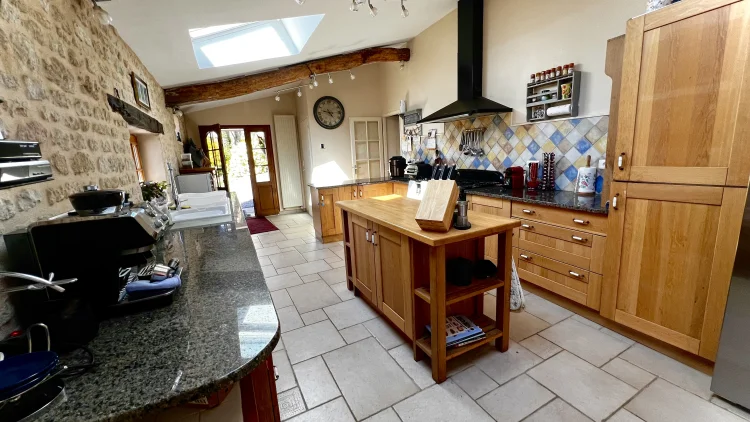 Puy de Fou an hour away. Futuroscope one and a half hours. The coast is an hour away. Many local attraction and sports facilities. 4 bedrooms, 2 full bathrooms, 1 separate toilet, large farmhouse kitchen, snug, salon, dining room, wood pellet boiler with silo, wood burner, car port, cellar, summer kitchen with bread oven, separate building containing a fully equipped wood working shop and garage for garden machinery. Tractor shed. 2 wood stores. Orchard, vegetable garden, greenhouse. Patio and deck.