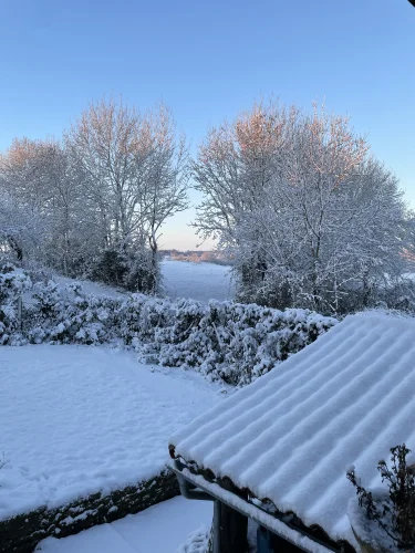 There are dog walks straight from the house. All through open farmland and along quiet farm lanes. There is an old millers lane leading from the house down to a water mill , about one and a half kilometers.