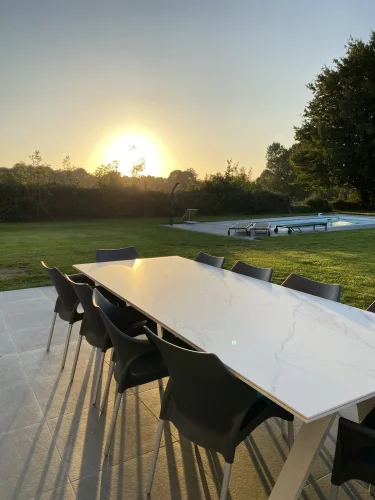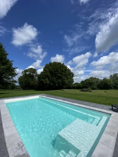 Nestled on a sprawling 8,544 m² estate in Normandy (Manche), this holiday home with several outbuildings can accommodate up to 19 people. It features 8 bedrooms, 4 bathrooms, a spacious dining room, a warm and inviting living room, and a fully equipped kitchen. Ample parking is available, with 6 uncovered outdoor spaces and the possibility of parking 4 additional cars in the outbuildings. Two open fireplaces, one in the kitchen and the other in the living room, provide the perfect ambiance and comfort. In summer, you can enjoy a delicious barbecue by the heated swimming pool.