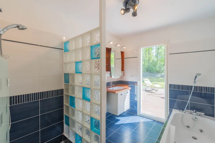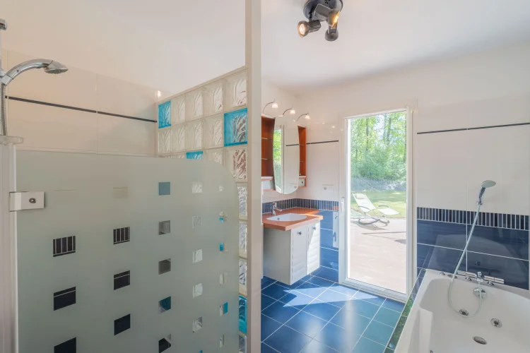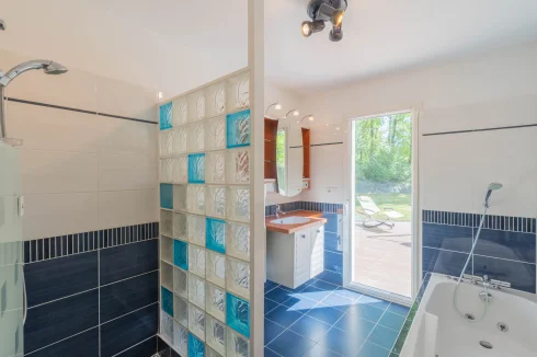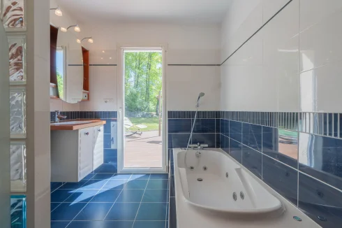Bathroom 1: 7 m² with whirlpool bath and walk-in shower