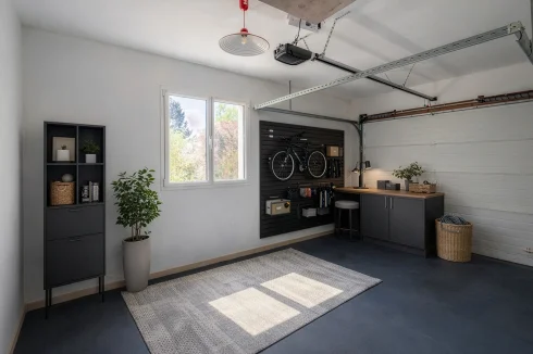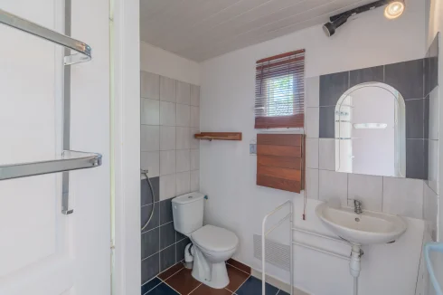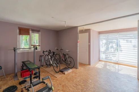 48 sq m outbuilding comprising a garage, gym, third bathroom and toilet, and attic (bedroom #5)