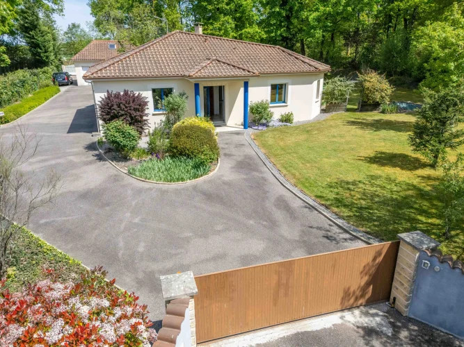 Detached house of 200 m² with a 48 m² outbuilding (converted) on a wooded plot of 2000 m², 5 km from the city centre of LIMOGES (bus line nearby). 4 bedrooms, 3 with terrace access, and an occasionally converted attic.