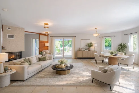 Living room and kitchen 60 m² (with a removable partition to open or close the kitchen)