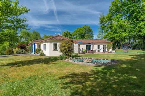 Single-Storey House of 200 m² (152 m² Living Space) with a 48 m² Outbuilding on Wooded Land
