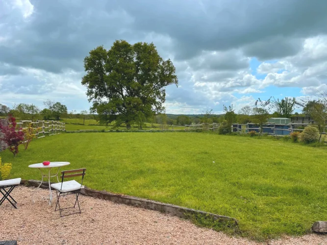 There is a beautiful south facing terrace and garden with far reaching countryside views.