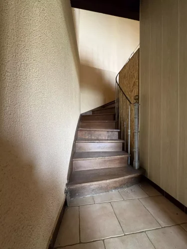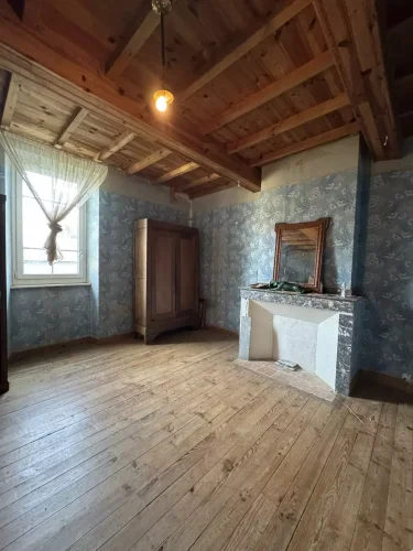 On the ground floor, it offers a large 30 m² living room and a 25 m² kitchen with a fireplace, then a bathroom with a toilet.