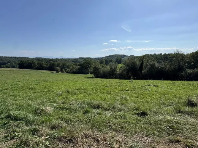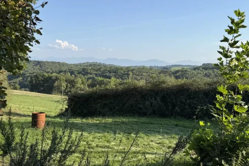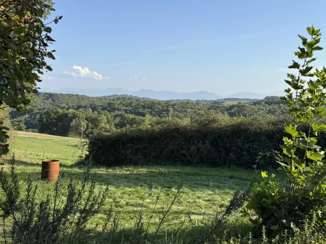 Isolated, with no neighbours a character farmhouse on a hilltop, surrounded by almost 7.5 hectares of wooded meadows and overlooking a breathtaking view of the entire Pyrenees mountain range