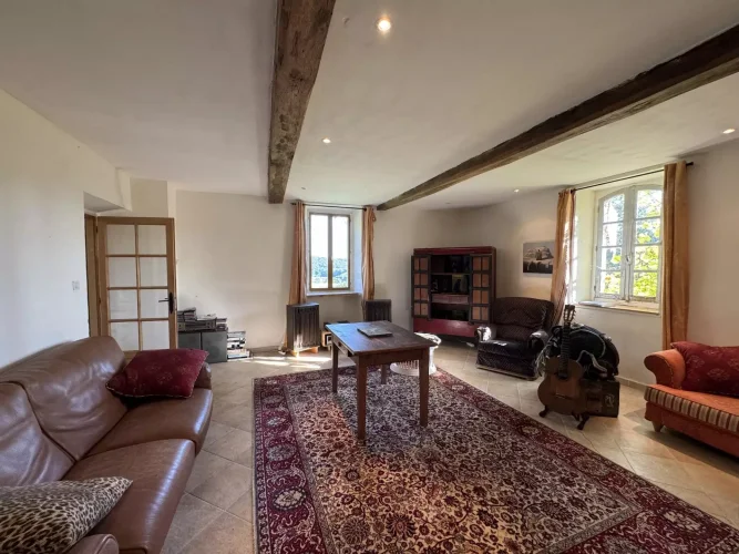 Between Toulouse and Tarbes, in the Boulogne-sur-Gesse area, a charming, atypical 1841 stone house, measuring 206 m² with 210 m² of adjoining barns.