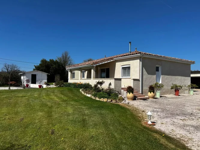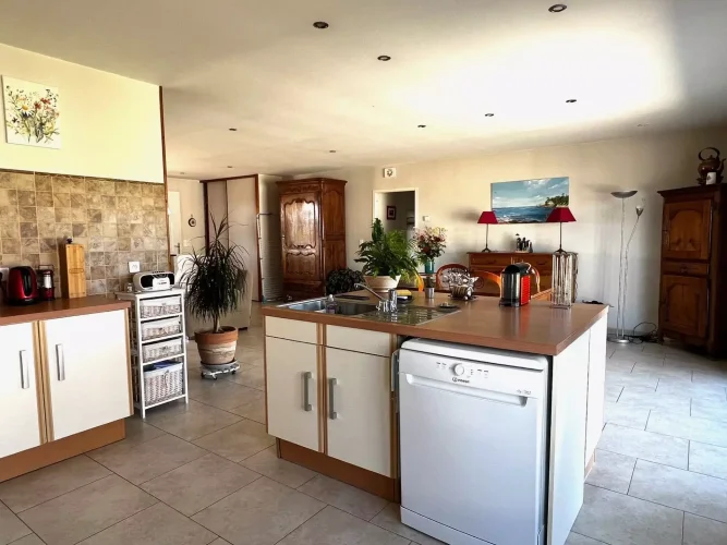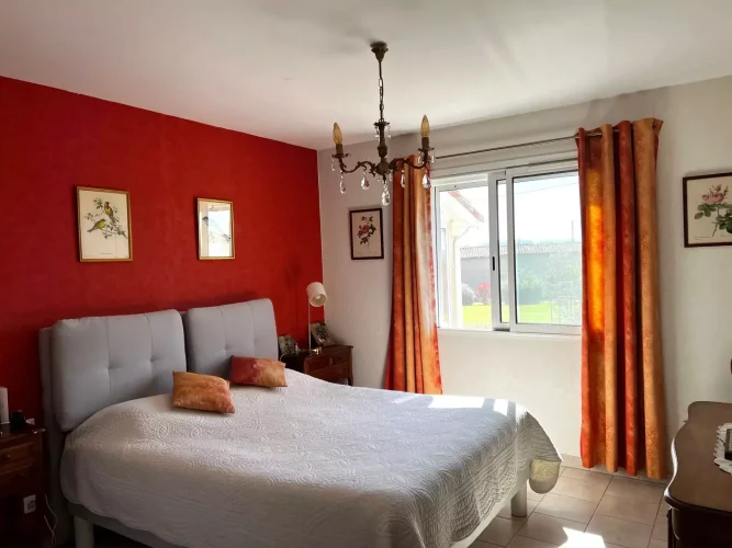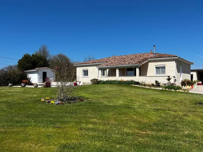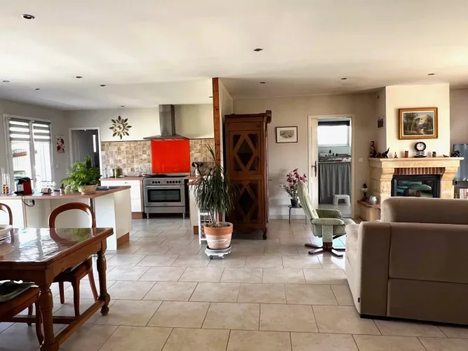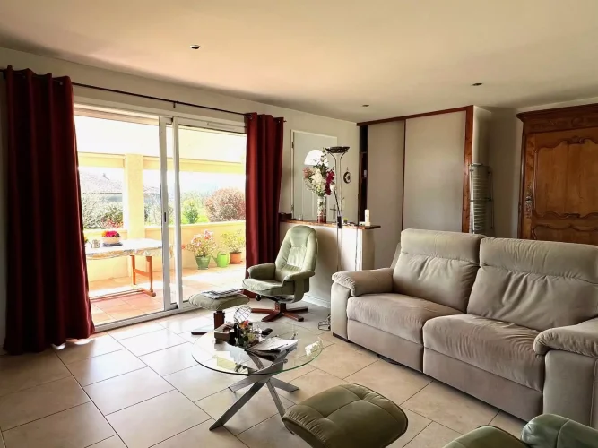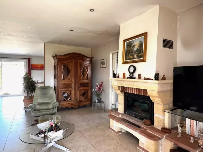 This perfectly maintained 2008 house offers 147 m² of living space in 5 rooms: a large, bright living room opening onto a 27 m² covered terrace, three bedrooms including a master suite, an office, a bathroom, a toilet, and a laundry room. In excellent condition throughout, with high-quality features, reversible underfloor heating with a heat pump, compliant sanitation system, and an electric gate.