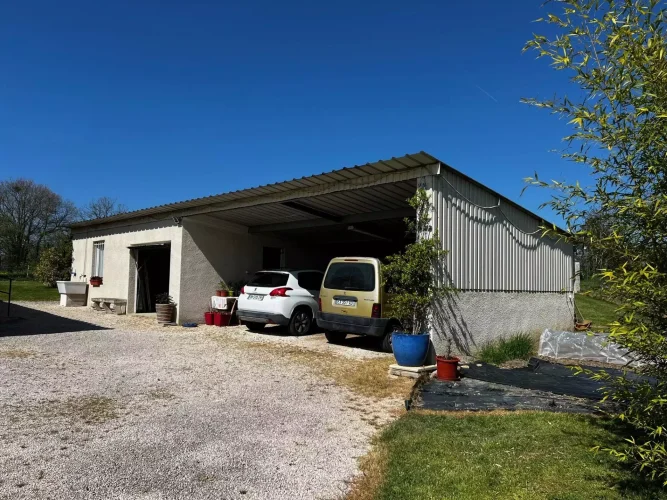 A partially enclosed barn of approximately 85 m² is also included, along with a fenced and wooded plot of 4219 m² suitable for building a second dwelling.