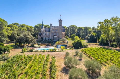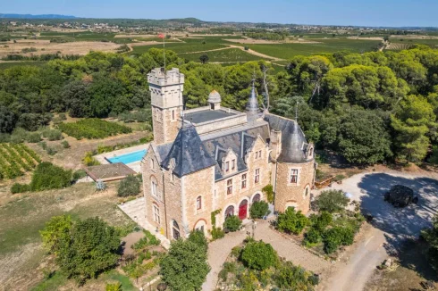 This magnificent and extraordinary Château, built in 1887, is located in the greater Montpellier region, Languedoc-Roussillon, Occitanie, South of France. It is nestled in the heart of a beautiful 4.5 hectare bicentennial park; once you step through the gate, your eyes are immediately drawn to its imposing towers.