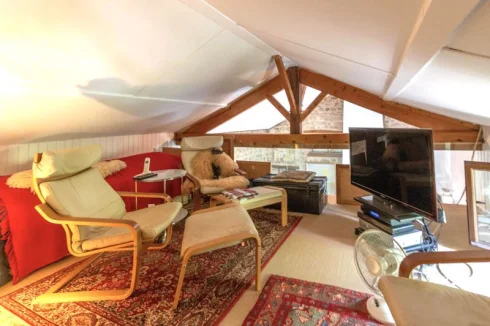 Above the dining area is a mezzanine level, which makes a good second living room/snug/office