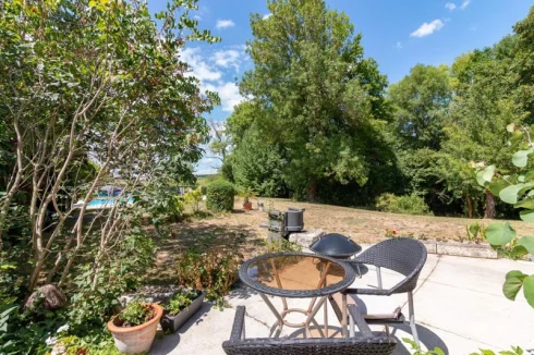 The garden is mainly lawned and there is also an area of woodland. To one corner of the garden is the pool. From the garden and pool there are far-reaching country views.