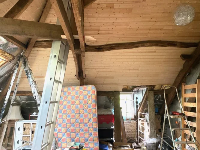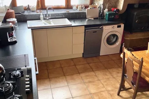 This pretty 3 bedroom village house comes with a newly fitted kitchen, over 1/3 of an acre of land and an outbuilding. The second floor attic space is part way through being converted into a master bedroom with en suite bathroom. The property is semi-detached and has a courtyard and parking area to the side. All the contents are included in the sale. The property is a short bike ride from the boulangerie and 15mins drive from the popular town of Vire. The ferry port at Caen is within easy reach.