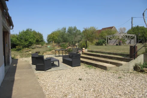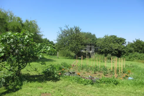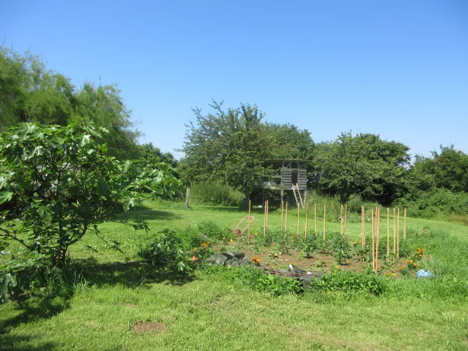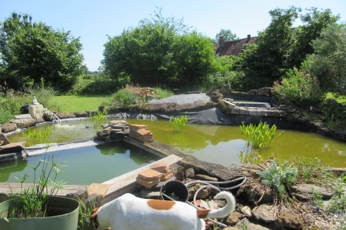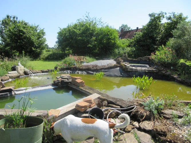 The just over 6500 m² garden has a pond a patio and a terrace.