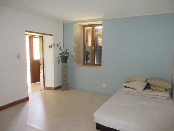 Located in a peaceful hamlet, the property comprises on the ground floor a large kitchen with dining area, sitting room with fireplace, a bedroom with dressing room, shower room, loo and utility room. Upstairs, two bedrooms.