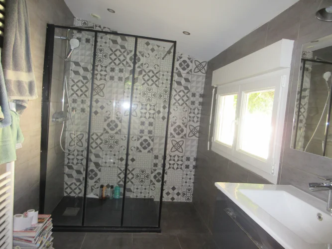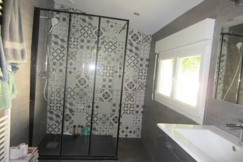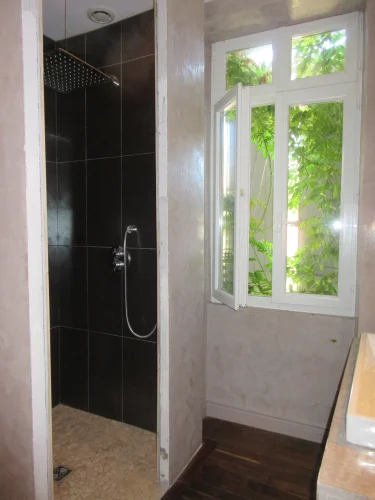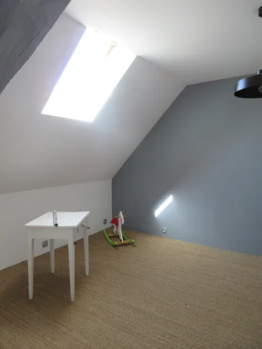 The house comprises on the ground floor a spacious living room with open kitchen and access to the terrace, and a shower room. On the first floor 2 good sized bedrooms one of which is ensuite and has a dressing room and a seperate loo. On the second floor, 2 bedrooms. The house has an adjoining barn so more living space is possible.