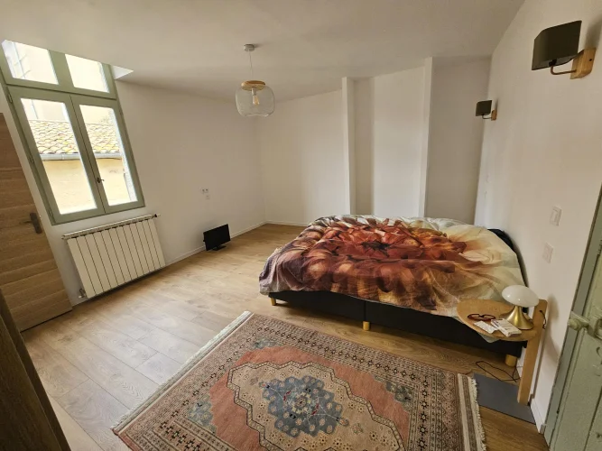 In the center of Pézenas, renovated stone house. On the ground floor, a large garage of more than 75m² with mezzanine, shower, toilet, and laundry room. On the 1st floor, a new kitchen, dining room, living room, one bedroom, a toilet, a shower, and a mezzanine. On the 2nd floor, a master suite with large dressing room and shower room, toilet. On the 3rd floor, an attic that can be converted. This house can be divided if needed.