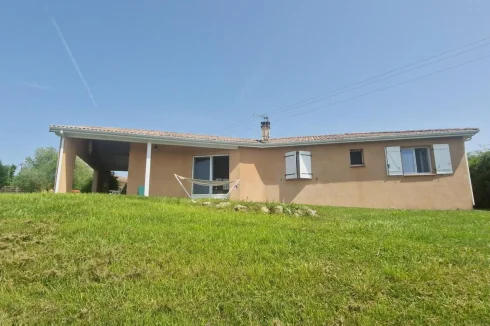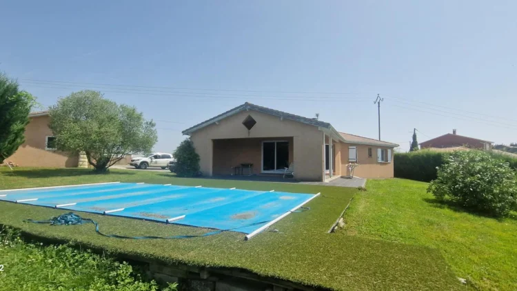 BUNGALOW FROM 2000 WITH SUPERB VIEWS OF THE PYRENEES, 'NEAR SAINT MARTORY' AREA... In a dominant position, on a plot of 2,000 m², quiet but not isolated, this 131 m² bungalow offers a living room composed of a fitted kitchen open to the living room with a large wood stove, total surface area of 67 m². 4 bedrooms (between 10 and 12 m²), a bathroom with shower and bathtub represent the sleeping area. The toilets are separate. The house is very functional, bright and immediately habitable. On the technical side: double-glazed PVC joinery, automatic gate, roller shutters (manual) and a recent electric water heater. In front of the house is a separate garage for 2 vehicles which is very useful. The swimming pool needs a new liner. Easy to maintain, bright, and with a superb view of the Pyrenees, this house will allow you to live happily ever after. ENERGY CLASS: D Price: €259,000 including agency fees (€247,500 net seller + €11,500 buyer's fees). TERRE IMMO
